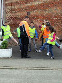 Onze oversteekvaardigheden werden nog een keertje opgefrist: op een straat zonder zebrapaden, daarna ook op het kruispunt aan de kerk. En de conclusie daar was: wij kennen onze verkeersregels perfect, verschillende autobestuurders (jammer genoeg) niet...